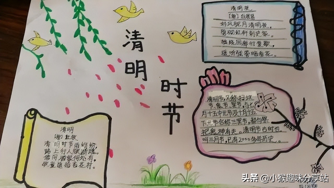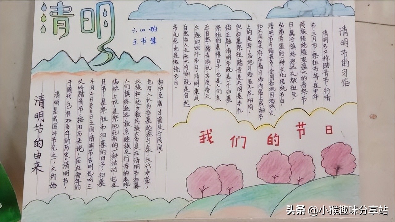 作为新时代的少年,同学们要对传统节日心怀尊重,并将之传承下去。作为小学生的我们,该如何传承呢?最简单的方式就是值此节日之际,画上一幅手抄报,写上你对清明节的了解与认知,亦或是感情与感悟,这既是过节日的仪式感,也能锻炼自己的动手画画能力与语言组织能力。