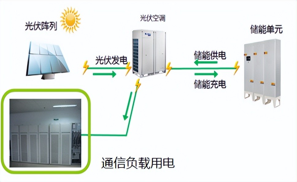 通过光伏空调打造光储直柔基站能源系统,适用于高寒高海拔地区,通过源储网荷互动,实现系统的能源的自给自平衡。