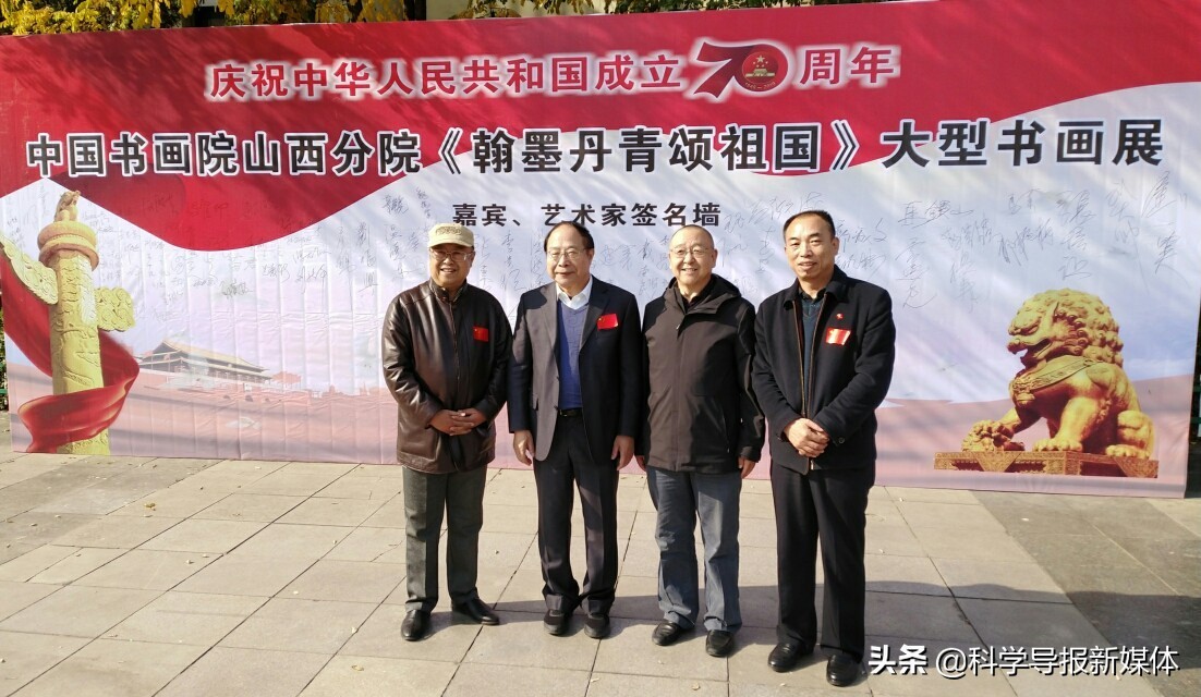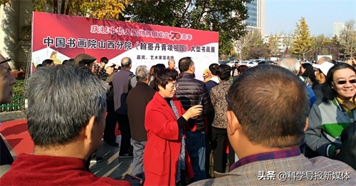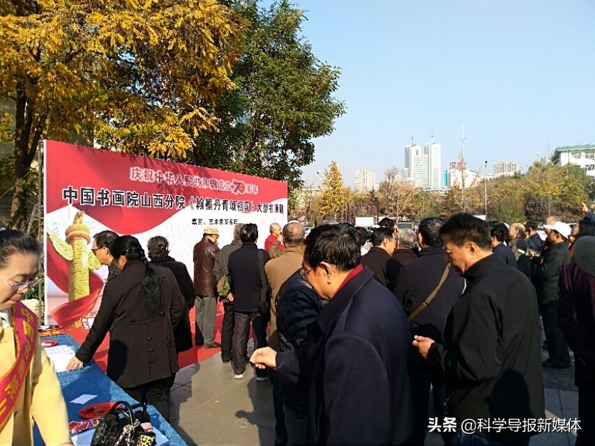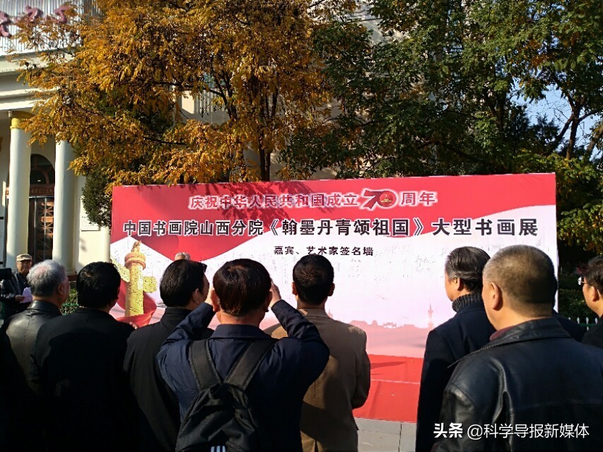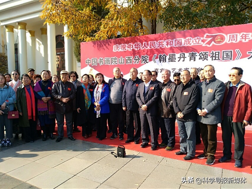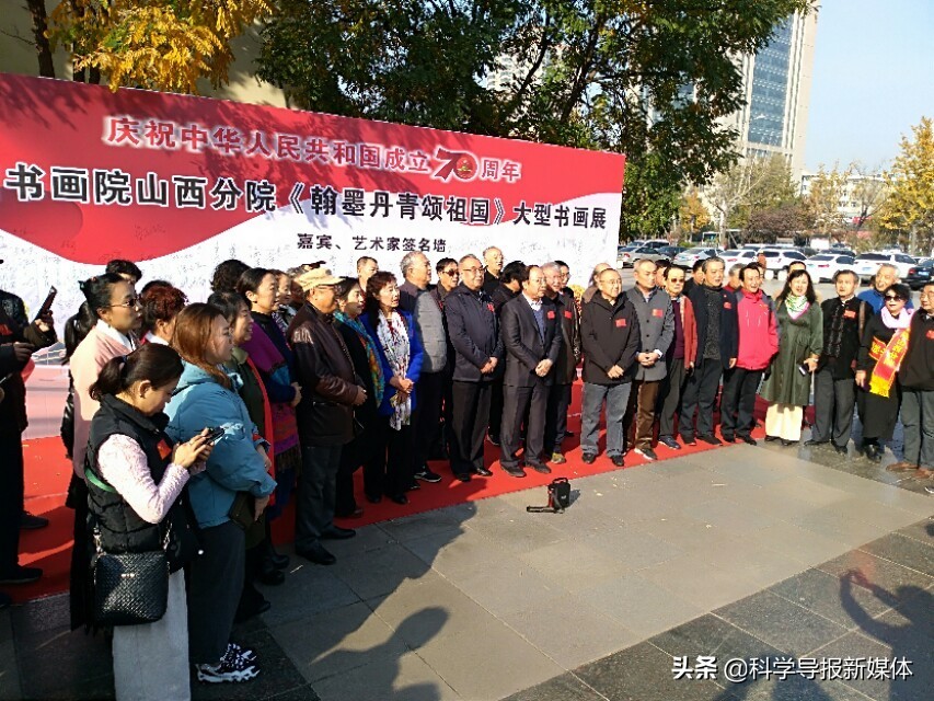 11月5日中国书画院山西分院《翰墨丹青颂祖国》大型书画览在省城太原工人化宫山西职工画廊隆重举行!山西书画界老一辈艺术家、各书画院同行道友老师、太原老三届同学会、军队转业的老战友、热爱书画艺术的企业界精英朋友同山西分院的艺术家老师近三百余人欢聚在工人文化宫广场隆重举行书画展开幕式活动,一首《我和我的祖国》的赞歌表达了艺术家们热爱祖国的心声!