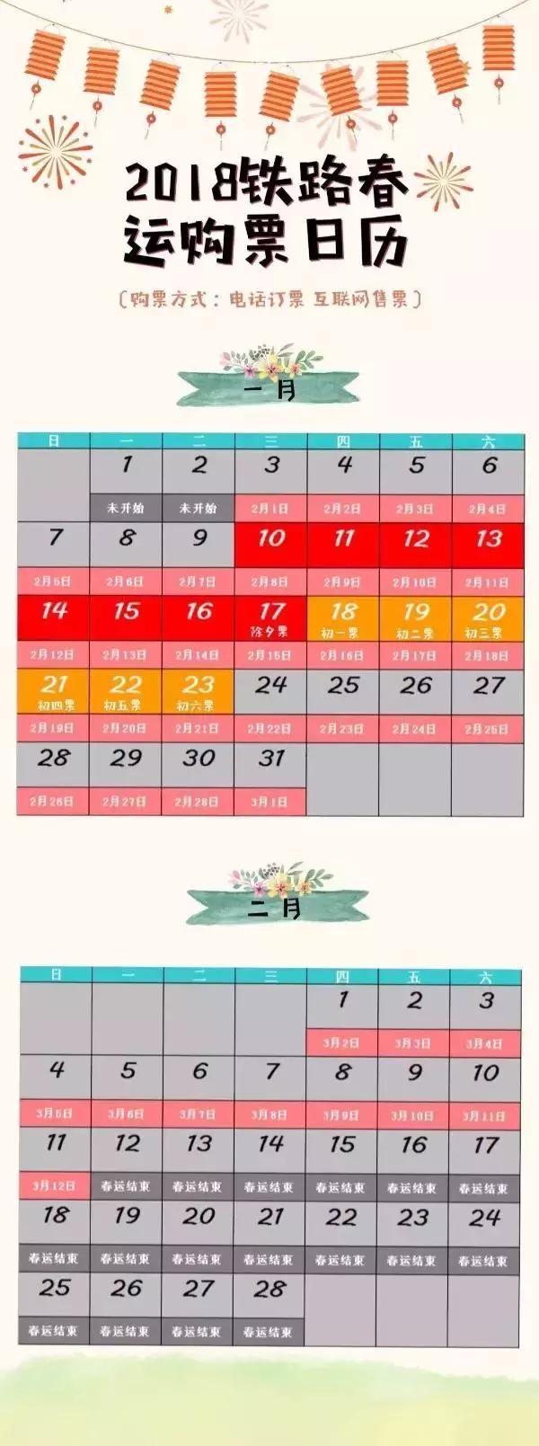 2018年春运从2月1日开始至3月12日结束,共计40天,火车票预售期30天(含当天)。