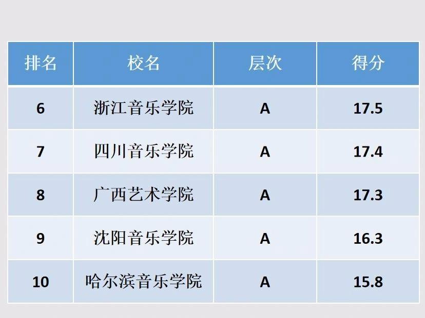 中央音乐学院、中国音乐学院和上海音乐学院分列前三位