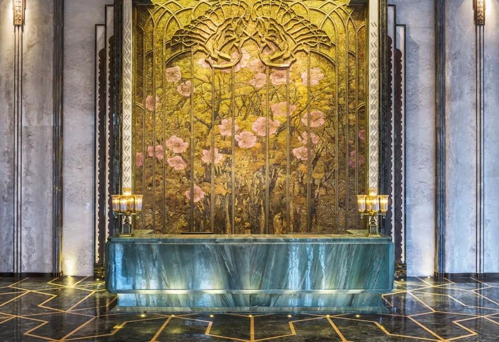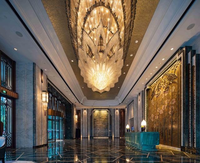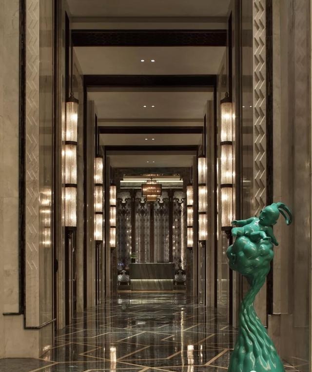 成都万达瑞华酒店的建筑起源于巴黎的Art Deco装饰艺术风格,通过将感性物品与异文化图案的有机线条完美融合,以表达高端阶层所追求的高贵感;而摩登的形体又赋予古老的、贵族的气质,代表的是一种复兴的城市精神。