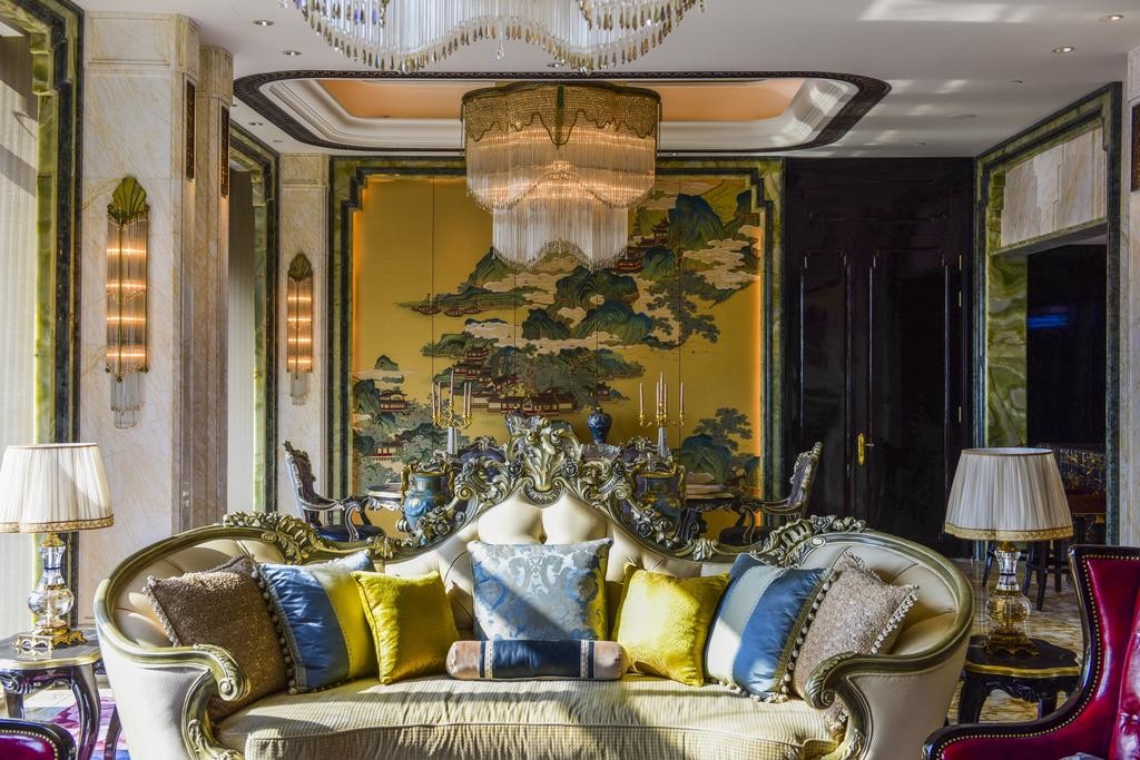 总面积达330平米,坐拥锦江美景及天府城景,设计富丽堂皇,客厅宽敞恢弘,配以先进设备的厨房,提供范思哲餐具的餐厅,是举办小型活动、私人宴会的绝佳之选。书房内的家庭办公系统,高速互联网服务、语音自动留言系统,宽大的办公桌以及商务办公椅都为尊客提供了有利的商务保障。