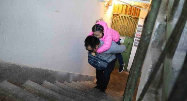 李廷勇背女儿回家