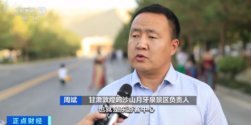 甘肃敦煌鸣沙山月牙泉景区负责人 周斌:今年景区增开了东门,也就是东游客中心,游客不用排队就可以快速入园,以减少中门游客的压力。