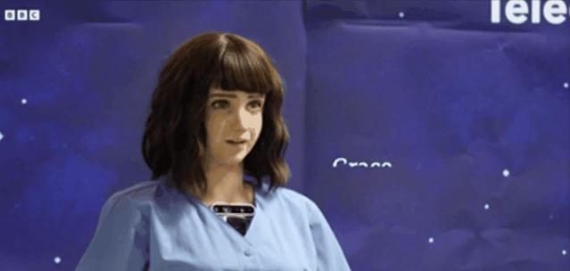 「我将与人类一起工作,提供帮助和支持,并且不会取代任何现有的工作,」一个穿着护士制服、留着可爱波波头的医疗机器人说。