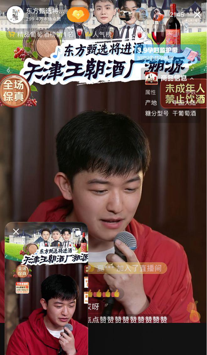 东方甄选 " 将进酒 " 账号在抖音和自有 APP 同步直播