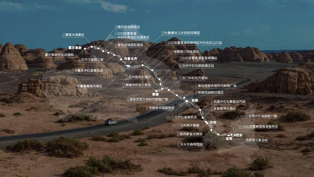 在 7 月 20 日,蔚来在其每年一度的 NIO Power Day 上公布,丝绸之路加电路线起于西安,途径张掖丹霞地质公园、敦煌莫高窟、天山天池、赛里木湖并最终到达霍尔果斯口岸,全程共计 3133 公里,共设有 33 座充换电站。