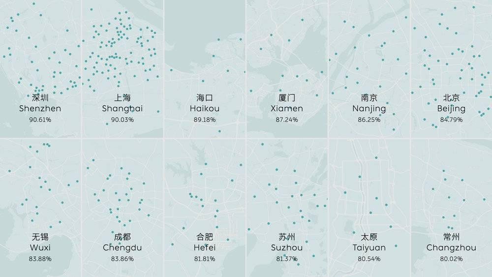 而在用户的日常使用中,蔚来还将持续提升 " 电区房 " 的覆盖率。对于这个概念,蔚来的定义是在用户工作单位或者住宅附近 3 公里内有换电站。目前,蔚来用户的电区房覆盖率为 73%。而在全国排名前 12 的城市,这个数字已经超过了 80%。