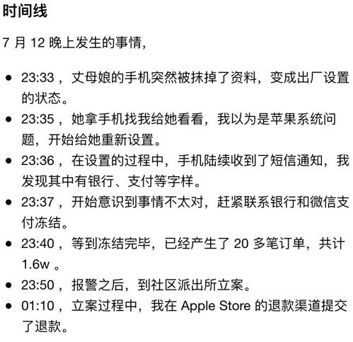 可以看到从网友丈母娘 " 手机资料被抹除 " 至 " 被消费盗刷 " 再到冻结,整个过程用时仅短短 7 分钟。