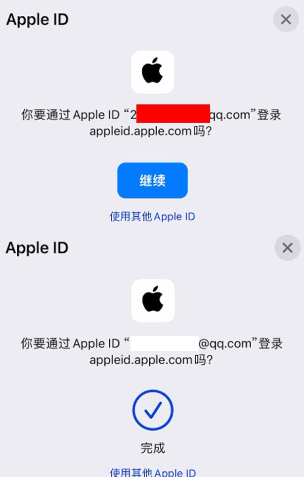 而网友的丈母娘就点了继续选择了 Apple ID 的快捷登录。