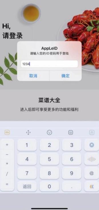 就是出现输入 Apple ID 密码的窗口,可以通过按 Home 键或上划手势尝试退出一下。
