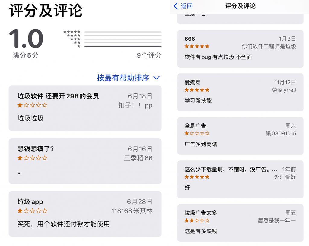 果不其然同名的很多,而且这些应用大多广告多、Bug 多优化差、同样有无脑就收费的情况。