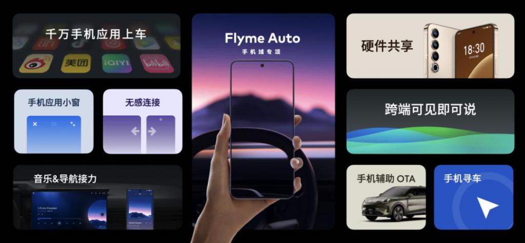 落实到日常体验,使用魅族 20 系列的手机用户,通过手机的 UWB 功能就能开车门,一键启动引擎;通过 Flyme Auto,用户在手机上正在查看的地图导航,在进入车内的一瞬间,就会投射在车机大屏上,实现无感连接;Flyme Auto 还提供了灵动小窗模式,在看会议文件的同时还能查看地图、切换音乐,更趋近于手机的分屏使用体验。