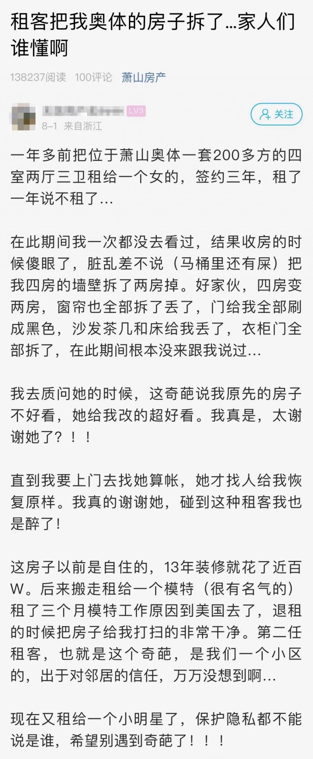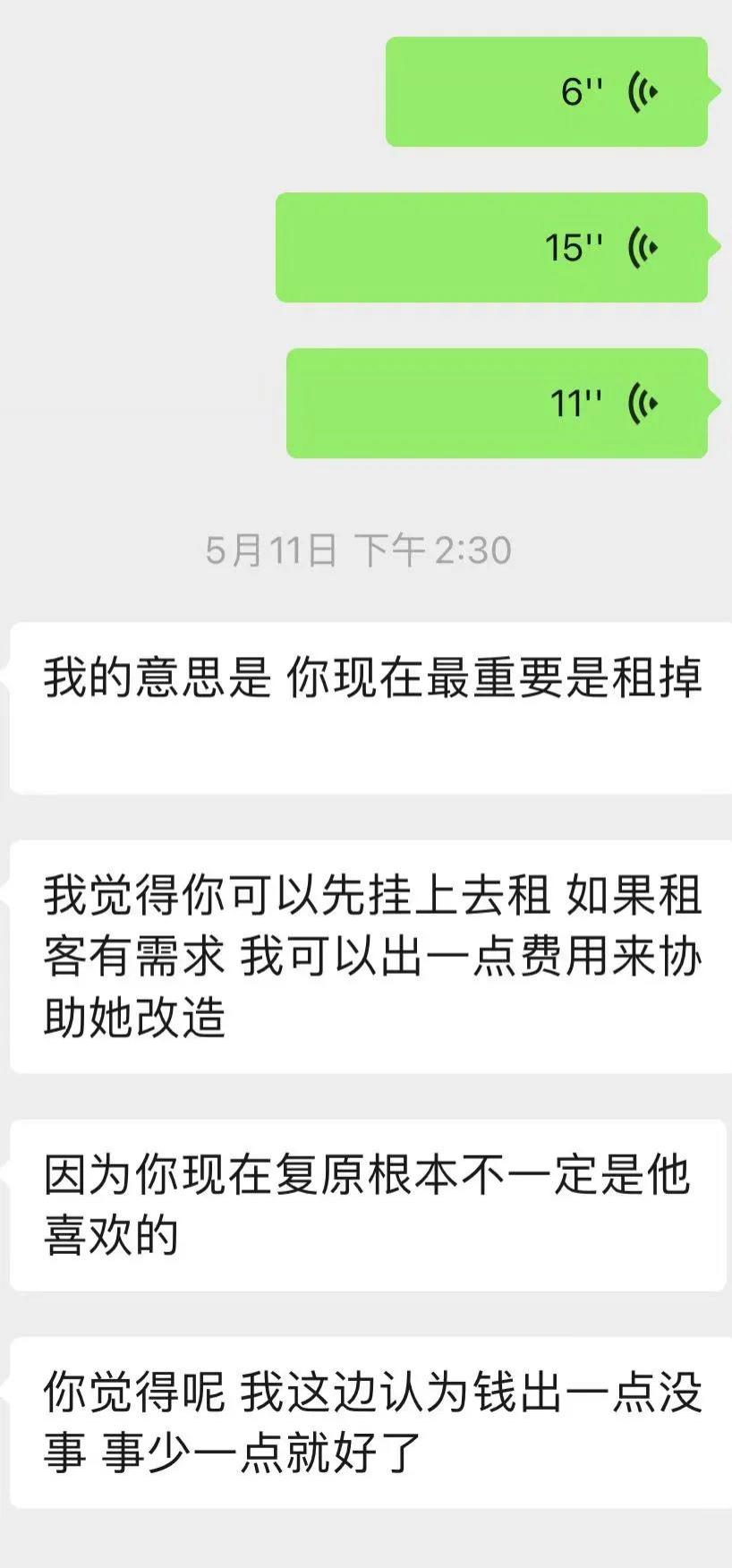 网友 @一圈又一圈:确保租出去什么样,收回来什么样就好,中途随便改。