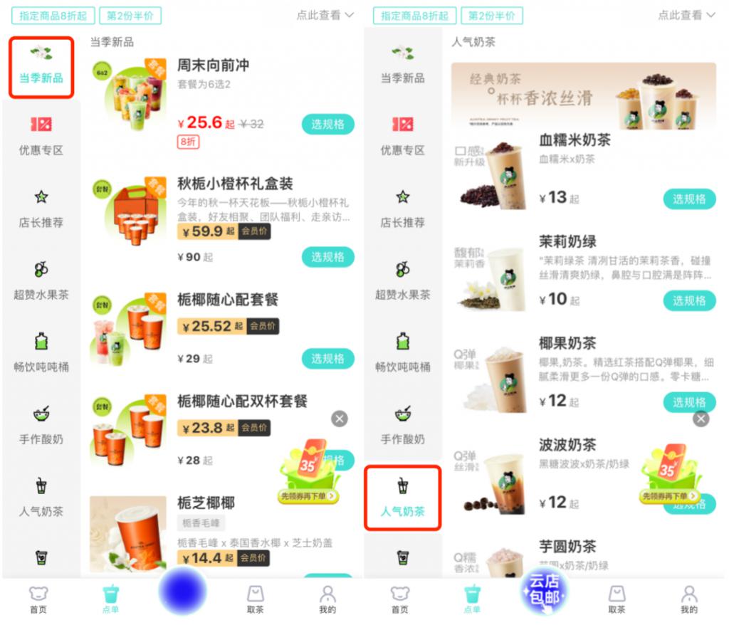 对于缺乏竞争壁垒的茶饮品牌来说,出圈的常用手段是先打造核心大单品,如喜茶的多肉葡萄、奈雪的 " 霸气 " 系列等。当品牌形成强势品类认知时,再围绕单品建立丰富的产品矩阵,并不断强化消费者心智。