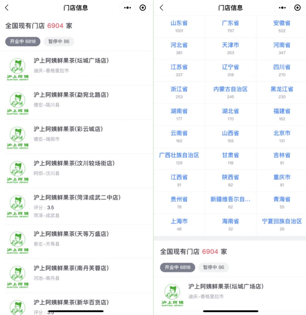 窄门餐眼数据显示,沪上阿姨 6904 家门店分布在 30 个省份、336 个城市,除西藏以外,各省市几乎是 " 雨露均沾 ",采取这样的门店布局策略,优势在于可以实现错位竞争、分散风险。