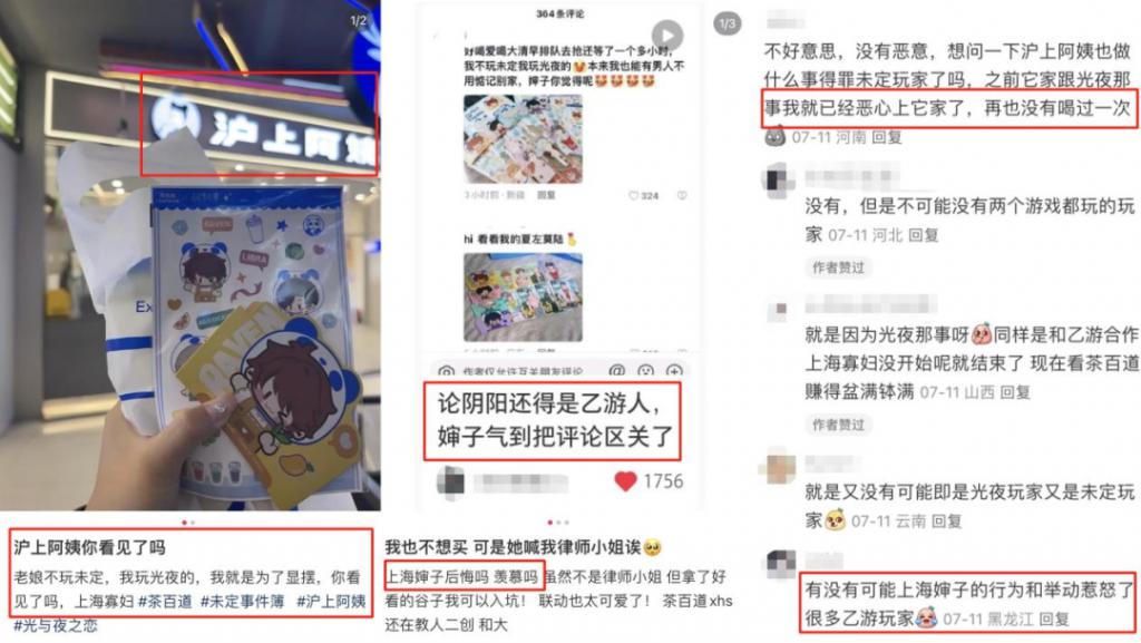 此前沪上阿姨与国产乙游《光与夜之恋》举行联名活动,却因门店工作人员多次辱骂、调侃玩家及游戏男主,甚至扬言要往产品中吐口水等行为而翻车。