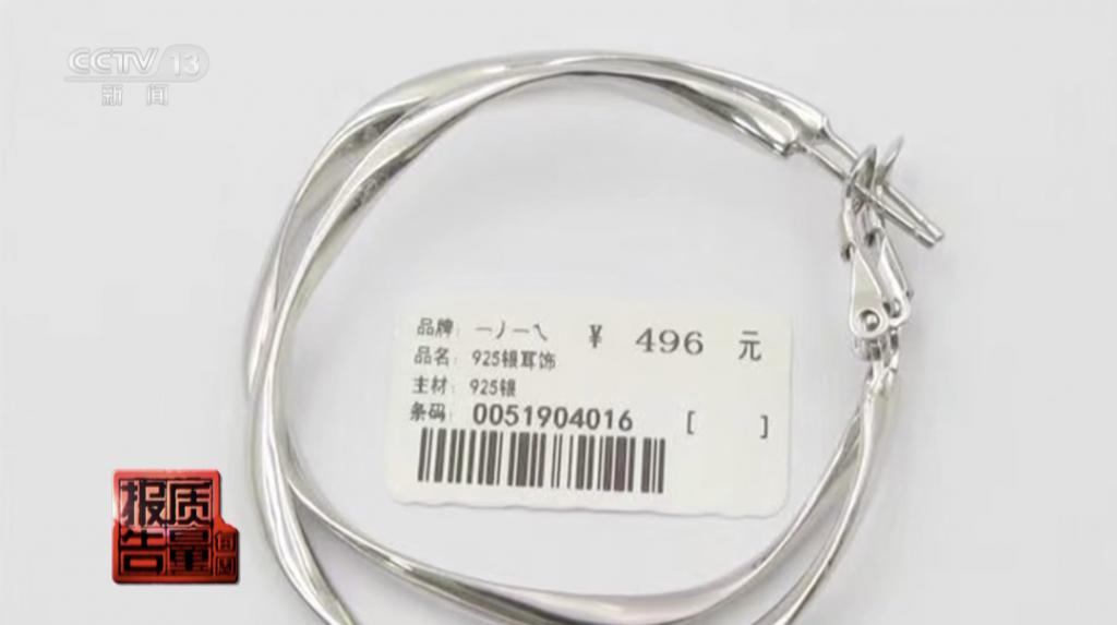 用普通金属冒充贵金属以次充好的情况并非个例,另一款耳饰仅标注主材为 925 银,未标注其部分配件为铁镍合金。检测中心工作人员表示,对于消费者来说,挑选产品时看到“ 925 银”的标识,肯定会被误导,认为整个耳饰都由 925 银制成。