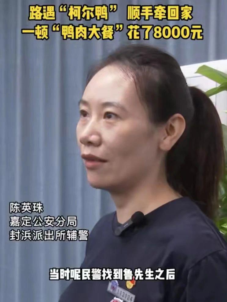 封浜派出所辅警陈英珠根据费先生反映的情况调阅公共视频后发现,费先生丢失的 " 柯尔鸭 " 正是鲁先生顺手带走的那只。