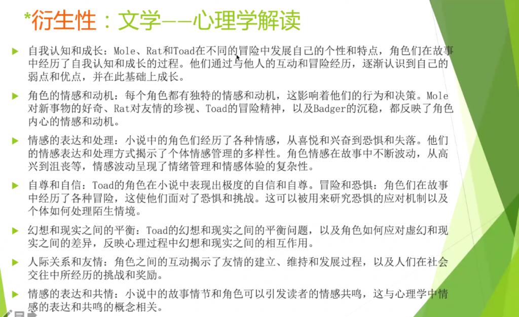 关于《柳林风声》的解读,谈凤霞教授还给我们提供了一个非常独特的角度——情感。比如,肯尼斯 · 格雷厄姆如何处理角色的情感?鼹鼠如何获得自尊和自信?蛤蟆如何管理情绪等等。