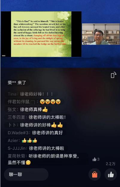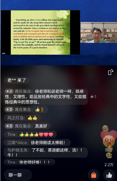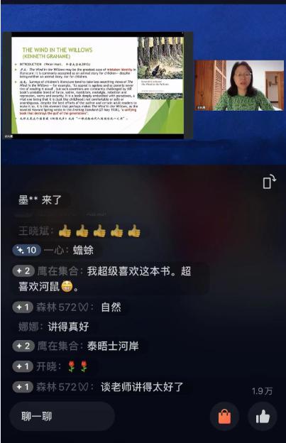 她建议老师们如果有兴趣的话,可以去读一读英文原版,因为肯尼斯 · 格雷厄姆在散文方面有着非常高的造诣,文本的那种韵律美,读起来特别怡人。