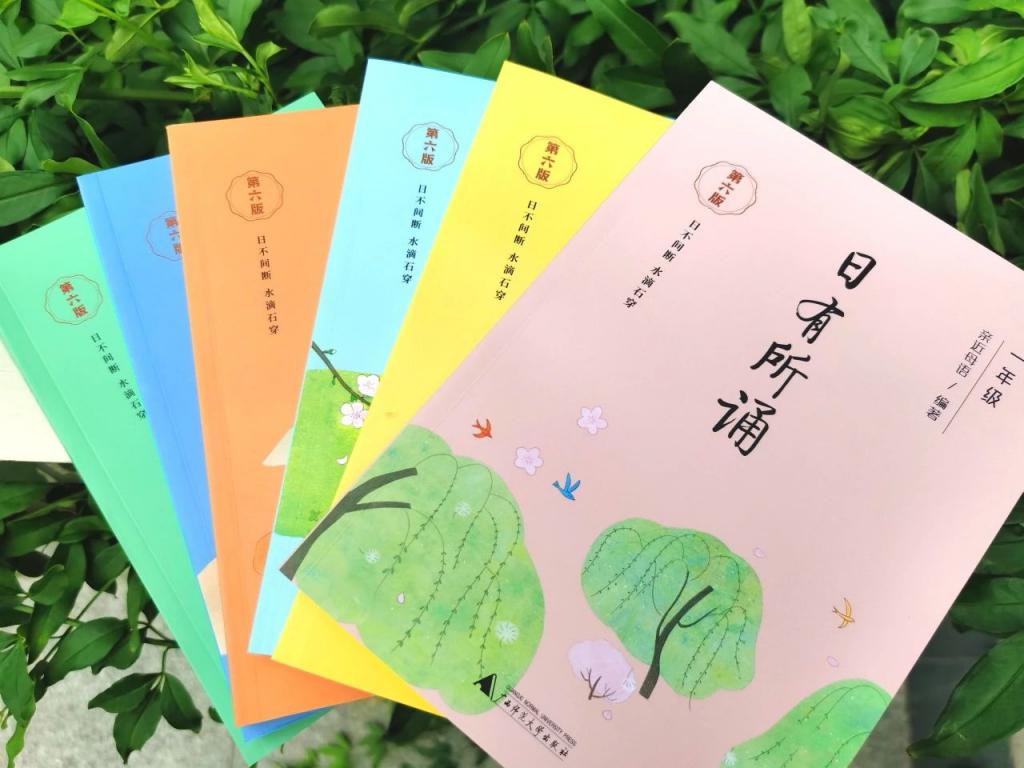 " 我们共读的是广西师范大学出版社出版的《西游记》,这个版本中,生僻字词有注音和注释,还附有名师导读,有效降低了阅读难度。"
