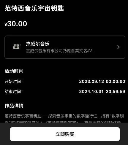 记者登陆该 app 查询发现,用户可以在平台内花 30 元购买范特西音乐宇宙钥匙,持有 " 数字钥匙 " 后便可探索 " 范特西音乐宇宙 "。官方介绍,在 " 范特西音乐宇宙 " 内,用户可以突破传统听歌或观看 MV 的方式,以游戏体验与社交互动融合的崭新模式诠释《范特西》。