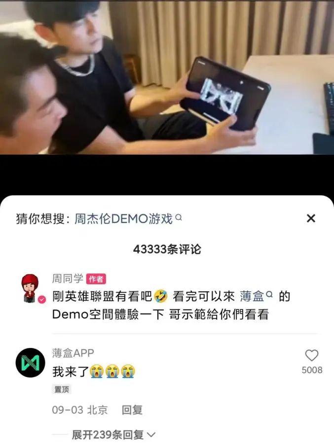 一直以来,周杰伦都对新鲜事物保持着兴趣,与薄盒合作的背后也暗藏了周杰伦进军元宇宙的 " 野心 "。