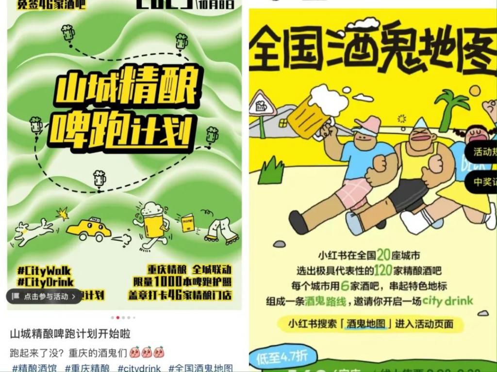 从 9 月初开始,一张 " 全国酒鬼地图 " 在小红书上频频出现,由小红书和全国 120 家精酿酒吧合作发起的 City drink 活动吸引了诸多年轻人参与。在小红书上," 全国酒鬼地图 " 话题下已有 1076.6 万次浏览,而涉及的 20 座城市还衍生出了相关话题,其中 " 重庆酒鬼地图重 " 话题下就已有 20 万余次浏览量。