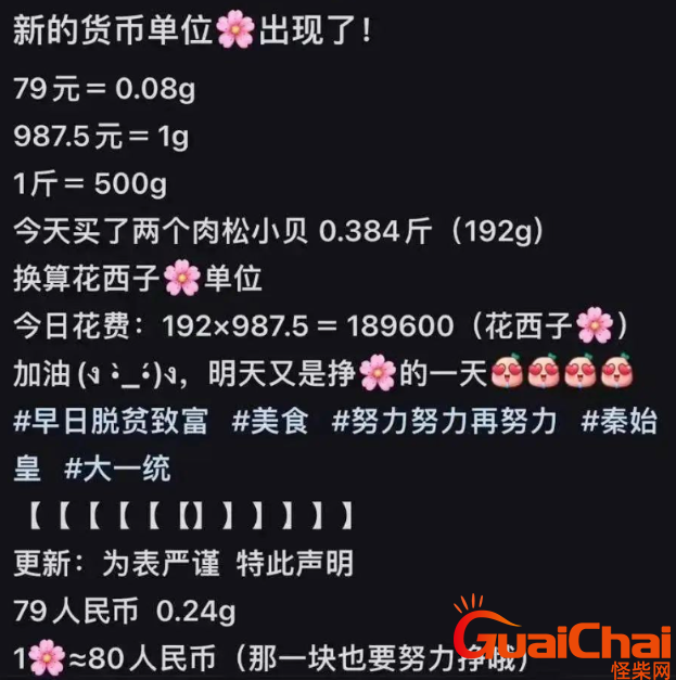 花西子成为互联网最新货币单位,全网都在算自己每天能赚多少“花西子”,一“花西子”够自己吃多少顿饭。一“花西子”=80人民币(不计算替换装的情况下)。