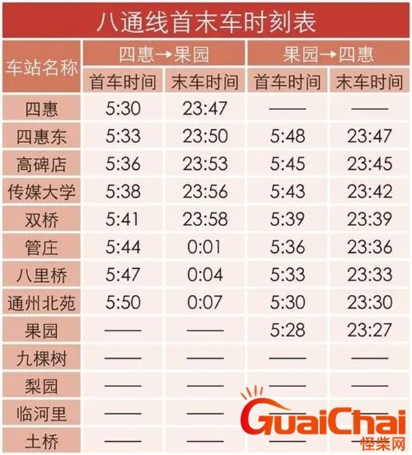 八通线(M1)四惠早6:00-晚23:22,土桥早5:20-晚22:42