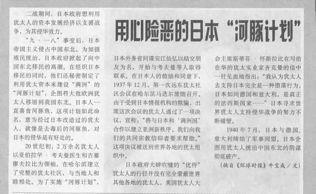 他们与日本勾结打算侵占东北三省,这就是臭名昭著的“河豚计划”,所以说,犹太人不招人待见是有原因的,时至今日也不招人待见。