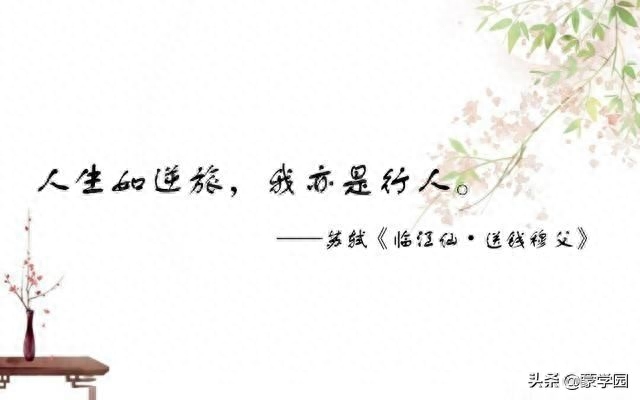 2、人生如逆旅,我亦是行人。____苏轼《临江仙·送钱穆父》