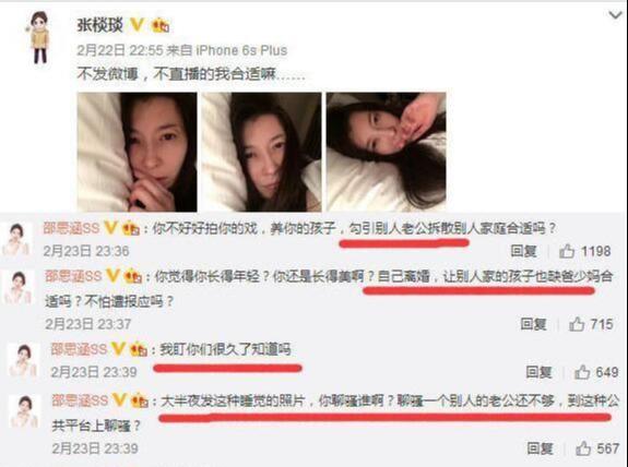 邵思涵直接点名称张棪琰破坏她的家庭,勾引她的老公,还不断在某平台说一些比较难以入耳的话来形容张棪琰,甚至直接提到了她的孩子。