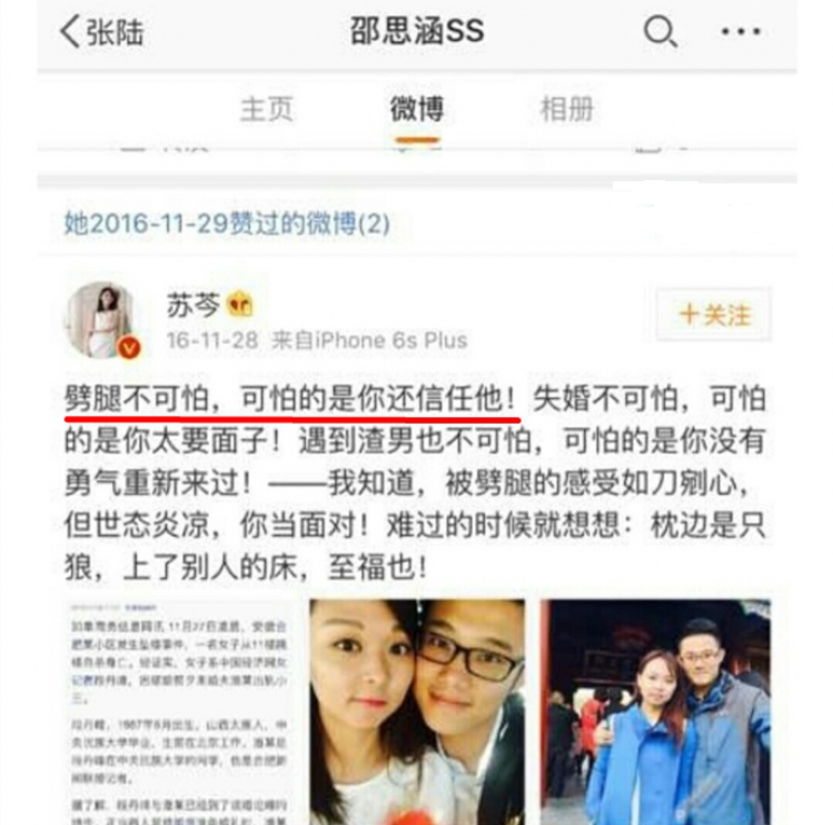 可她所有的指正都只是怀疑,没有任何的石锤,随后,网友发现,早在前一年,邵思涵就已经点赞了他人有关出轨的发文。