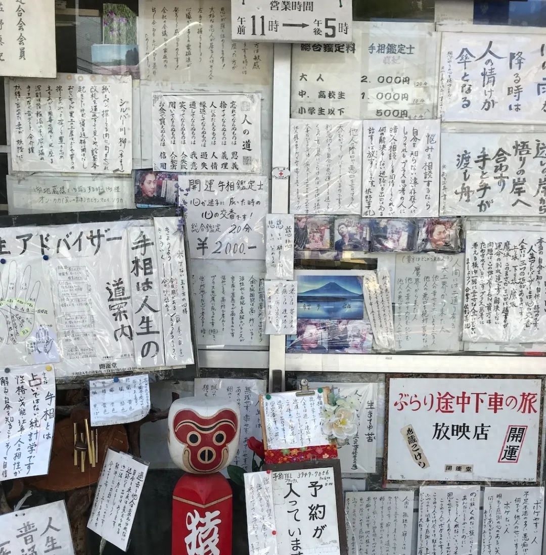 走在日本的街道上,也总是会在遇到个老大爷支个算命摊儿,或者老奶奶举着个看手相占卜的牌子——虽然这些在我国偶尔也能遇到,但基本都是无人问津的存在,可在日本确实相当地受欢迎。
