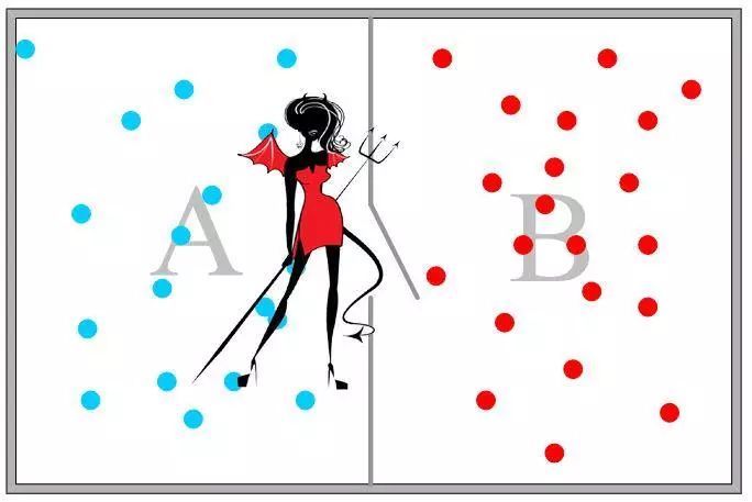 而这个存在物就是“麦克斯韦妖”,小妖精掌握和控制着高温系统和低温系统之间的分子通道。它利用了分子运动速度的统计分布性质。因为根据麦克斯韦分布,即使是低温区,也有不少高速分子,高温的系统中也有低速度的分子,通过这样一个能够控制分子运动的小妖精,在两系统的中间设置一个门,只允许快分子从低温往高温运动,慢分子则从高温往低温运动,在“小妖”的这种管理方式下,两边的温差会逐渐加大,高温区的温度会越来越高,低温区的温度越来越低。
