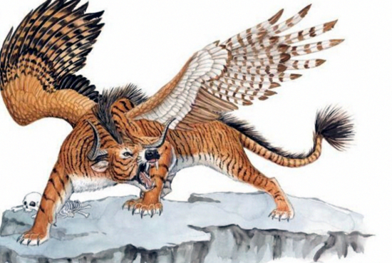 穷奇:这是一个生有双翼的虎神。它善吃人头,尤其是披有长发的人头。