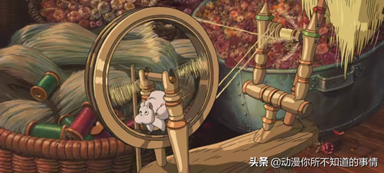 在汤婆婆的生活方式里,他的服装和戒指很奇怪,很不相称。钱婆婆家有一块田地,是棉还是麻不清楚,,纤维互相编织成线,染色,再用织布机织成,我们可以看到一整套加工过程。如果住在那栋房子里,就应该穿更朴素的衣服,系上围裙,而不是戴着宝石的戒指妨碍工作。