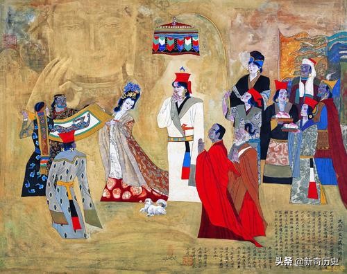 南北朝后期,羌族的一支兴起于青藏高原一带,建立了吐蕃政权吐蕃人即今天我国藏民族的祖先。吐蕃风俗称强健雄壮赞,丈夫为“普”,所以其君长被称为“赞普”,即“伟丈夫”之意。贞观初年,吐蕃诞生了一位杰出的赞普—松赞干布(约617—650年)他本名弃宗弄赞,松赞干布是臣下给他上的尊号松赞”意思是端庄尊严,“干布”是深沉大度之意,藏族传说中就称他从小聪明智慧、性格沉稳坚毅且多才多艺。他从父亲普朗日论手中继承了吐蕃赞之位,兼并周边部落,统一了青藏高原,在逻些(今西藏拉萨)建立了强大的政权。松赞于布是吐蕃历史上的英雄,是一位具有广阔视野的杰出政治家,在贞观八年(634年),他首次遣使与唐通好,唐派使节冯德遐带着国书和礼物回访,松赞干布亲自接见了唐使。当时,吐蕃处于奴隶制发展阶段,中国正处于封建社会的盛世。