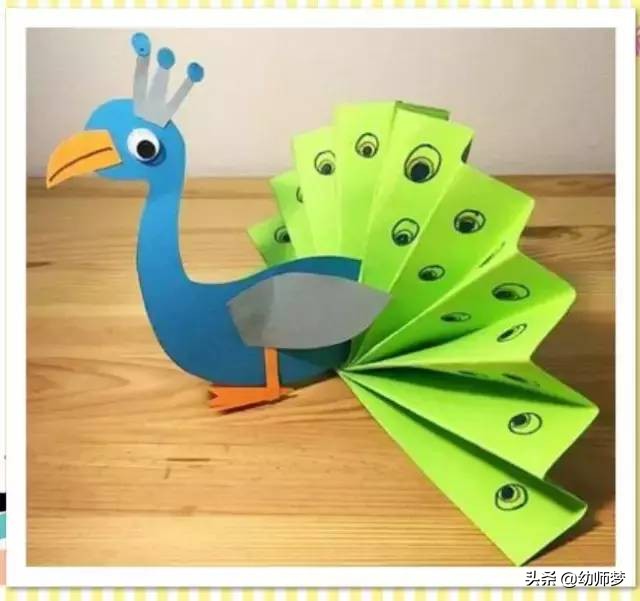 美丽的孔雀开屏啦,周末,和孩子一起在家做一个孔雀吧~