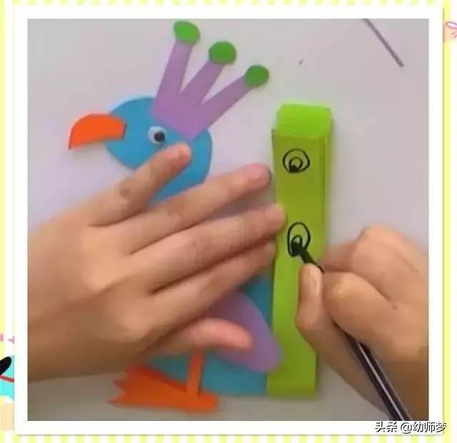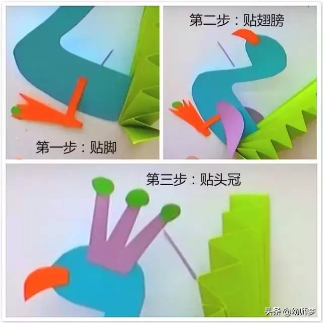 将做好的脚、头冠、嘴巴贴在孔雀身体上~