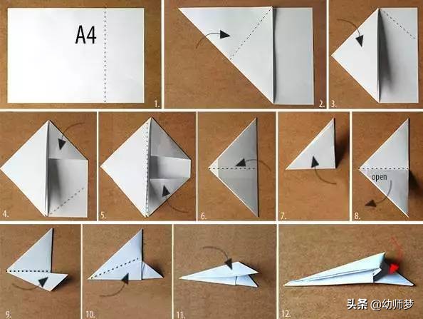 准备一张A4纸,按照上面步骤图进行折叠。提示:第6步梯形直接折过来就可以,不用塞进里面。第10步下半部分继续往上折,第11步上半部分往下折塞进去(有一个痕迹不是剪切哦,只是纸的折痕)。ps:点击图片可看大图。