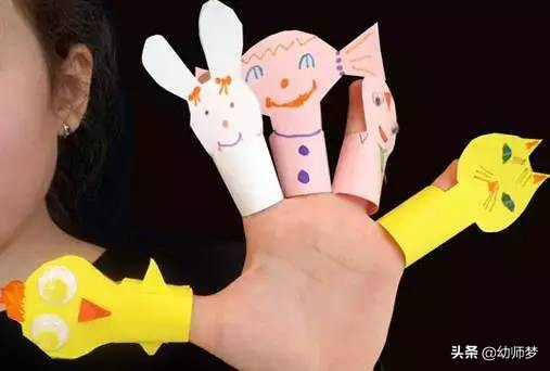 在卡纸上画出来形状,剪下来;第二步:给这个形状加工成你喜欢的小动物,比如贴上眼睛、画上胡子嘴巴等待;第三步:下方长方形粘贴起来,就可以戴上手指头啦!