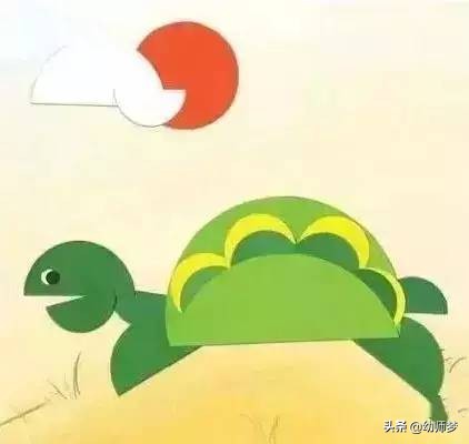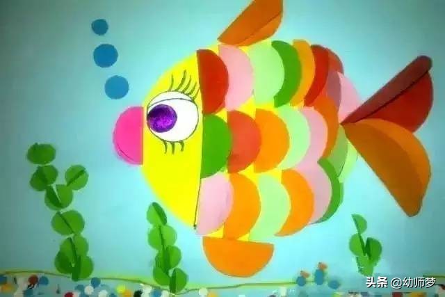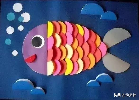 这是用半圆拼出的小彩鱼儿,相信小朋友可以做出更漂亮的哦~