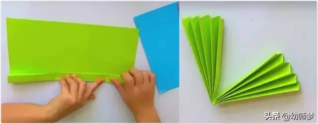 将卡纸折成扇形后,对折~