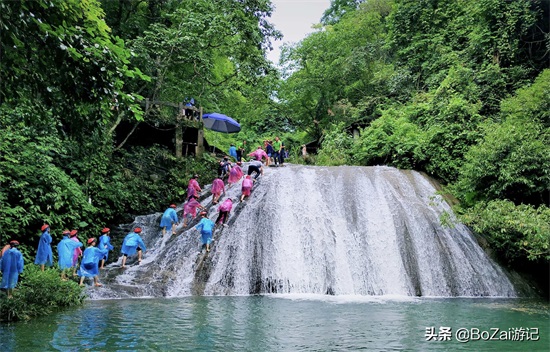 在古东游客不仅可以亲密接触漓江支流水,还可以与它尽情嬉戏。在这里您只要穿上古东阿婆编织的草鞋,戴上安全帽,踏古东八瀑九潭而上,即可享受漓江水带来的快意。