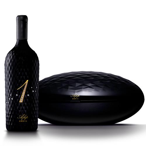 18K金手工打造的"1"字呼之欲出,28颗施华洛世奇水钻点缀周边,奢华感不彰自显。其包装盒犹如国家大剧院的巨蛋造型浑然一体,独具一格。其外观源于未来派建筑风格,恰到好处地演绎出建筑美学和红酒品位完美结合的极致神韵。该产品获得了全球包装设计"奥斯卡"奖——Pent Awards 2010年奢侈品类设计金奖。