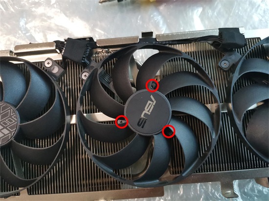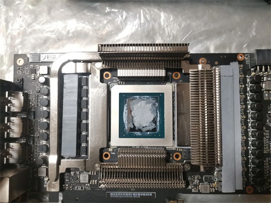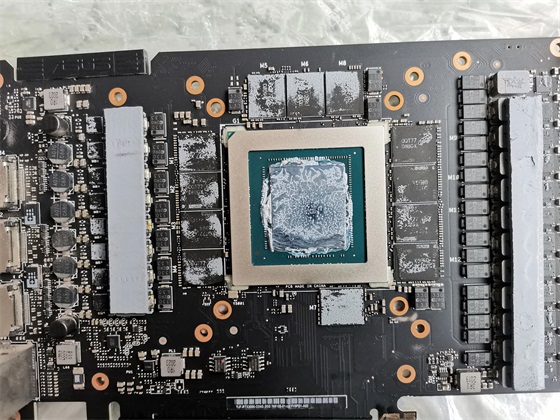原来怎么拆,现在就按顺序装回去,安装前保证散热鳍片、背板、风扇和散热器盖板没有残留的水渍或酒精。先把PCB和背板固定好,然后是独立的显存散热片。因为用的是7921硅脂,除了CPU不粘什么都粘,用导管将硅脂挤上去后粘不住,又用刮刀抹平,发现还是粘不住,黏在了刮刀上